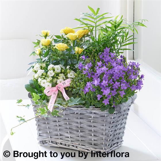 This basket of flowering plants is like a miniature garden that can be enjoyed inside for weeks to come. They’ll love the pretty white kalanchoe flowers, the purple campanula – and the radiant yellow rose plant will bring a burst of summery sunshine to their room.